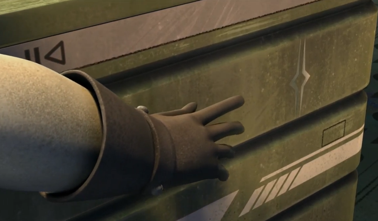 What started with a ‘name’ and a distorted voice to which no voice-actor was assigned exploded after this shot from one of the second half-season. Hera Syndulla recognizes cargo this mysterious Fulcrum left for her to collect from the markings. But the mystery was not revealed until the Season’s finale and was a pointer towards what Rebels is going to become in Season 2, not towards what it was in Season 1. The tribute excellently plays with this.