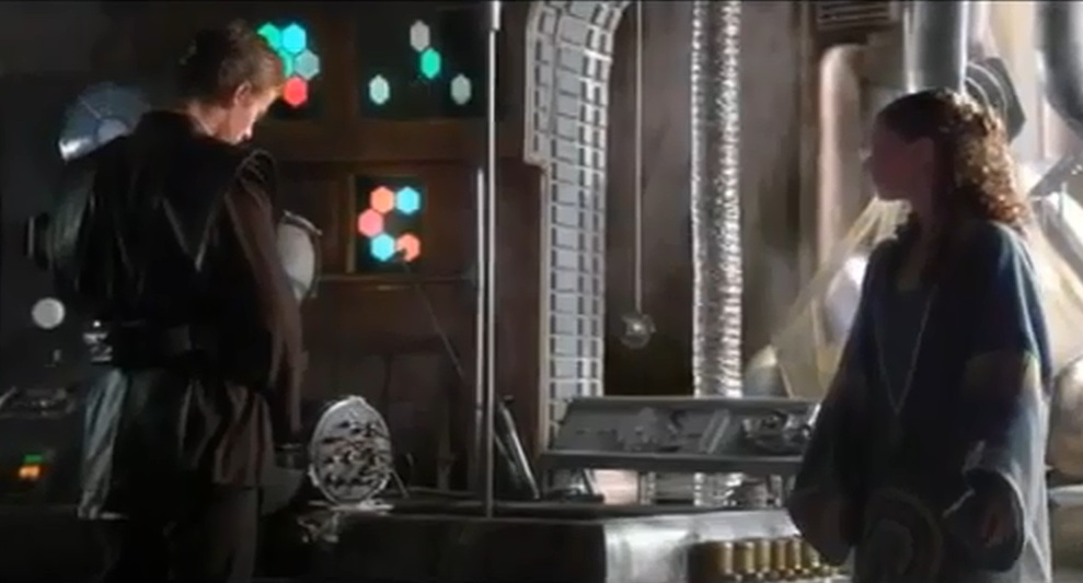 We know from the Prequels what a tech-savy kid Anakin was and how ‘fixing things’ was the way Anakin would take his mind off emotionally difficult experiences. After killing the Sand People and losing his mother, he starts to ‘fix things’ in the Lars Homestead. Even in The Clone Wars in one of the Season 6 episods he comforts and quiets his mind and heart, which are in turmoil over Padme, by ‘fixing something’ in his room in the Jedi Temple while talking to Obi Wan. We see this Anakin Skywalker come through now much more clearly when, in this tense moment of suspended roles, he comments on his sons technical skills. The bridge is completed here, because in acknowledging his sons skills he is acknowledging the extent to which he and his son are the same.