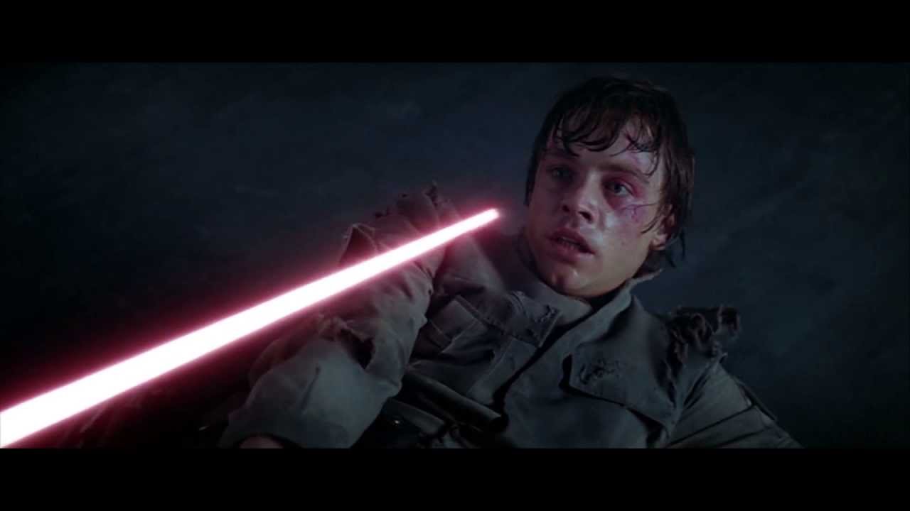 Anakin does not reply at first, he merely seems to study Luke’s lightsaber. He fires it up as Luke has turned his back on Vader, but notice that this is not the rejecting sense of “turning your back”. As Luke’s facial expressions indicate he is aware that under normal circumstances Vader would be a threat … but not now, not here on this bridge … not Anakin. Now we come to a moment where, in my view, the Prequel Trilogy greatly enriches this scene. Anakin assesses Luke’s skills by studying his lightsaber and comments his son’s skills are now complete.