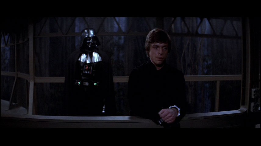 Formal as this may sound, it is Luke’s way of suspending his looming destiny. He doesn’t say that Vader will not bring him to the Emperor, he just says that Vader will not do it now. Luke addresses Anakin Skywalker, not Darth Vader. And Luke addresses him with confidence, not with the attitude of a captured Rebel prisoner. We have entered a new sphere now.