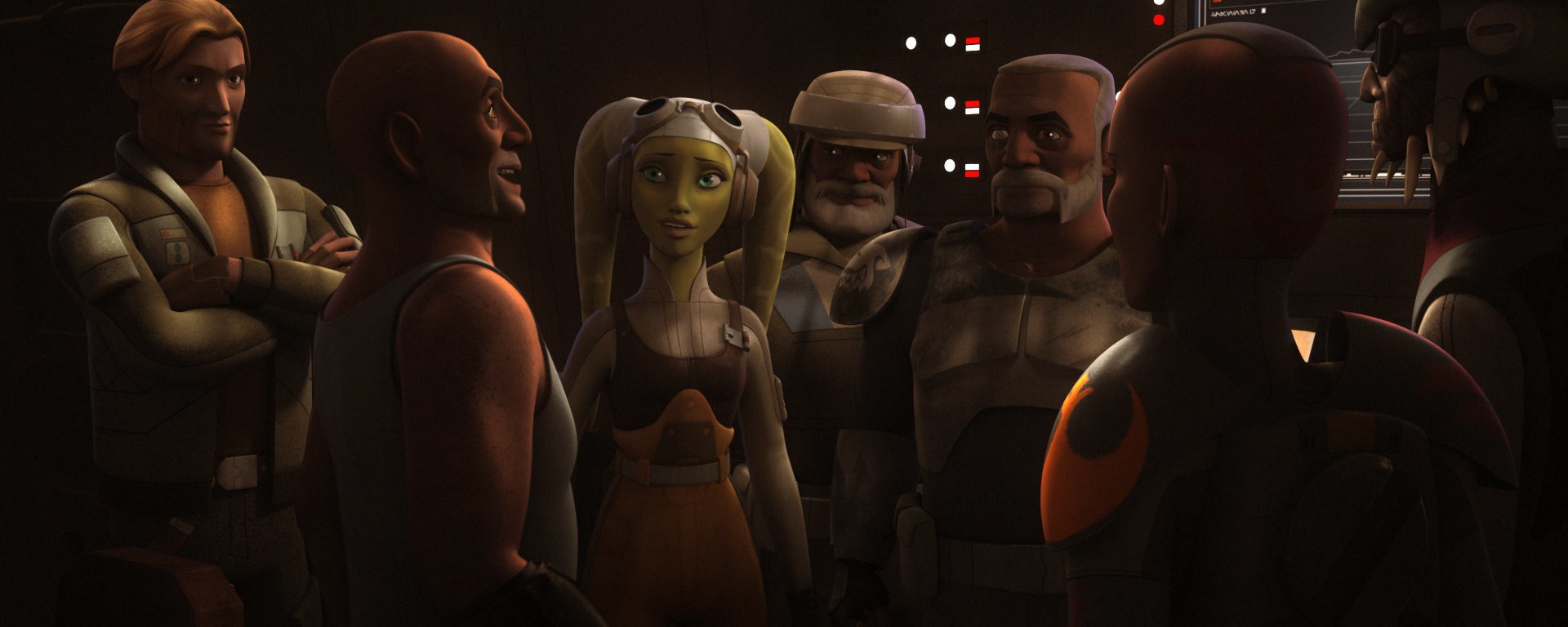 The episode opens up with the Ghost crew, excluding Ezra and Sabine, leaded by Hera gathering up the team to help Ezra liberate Lothal. We see their immediate reaction summarized in the following awesome lines, which really set up the mood for the whole finale: