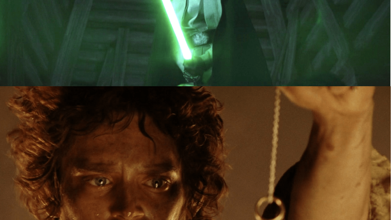 This might call back a memory of another scene into your mind: when Luke confronts Vader on Endor’s Sanctuary Moon. But Vader’s response is “that name no longer has any meaning for me”. Vader seems far beyond any redemption. But this echo is fascinating: because just like Frodo fears that Gollum is his own future if the Ring gains a hold over him, so does Luke worry that Darth Vader is his future if he cannot resist the pull of the Dark. It is the vision from Dagobah in Empire Strikes Back that troubles him and brings him to seek Vader’s redemption.